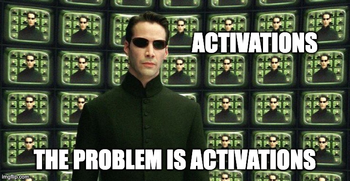 The problem is activations. During the forward pass, PyTorch saves every intermediate tensor needed for the backward pass: the output of every linear layer, every activation function, every normalization, every attention head. For a 70B model with batch size 8 and sequence length 2048, that’s hundreds of gigabytes of activations. The model weights are maybe 140GB in FP16. The optimiser states are another 280GB. The activations dwarf everything else, and they grow linearly with batch size and sequence length while the model parameters stay constant. You can’t make the model smaller without retraining, obvi. You can’t reduce batch size without destroying throughput. You need a way to reduce activation memory without changing the model or the training dynamics.